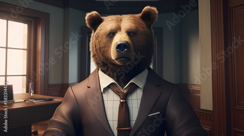 A bear in a suit ready for a day of business, digital art illustration, Generative AI