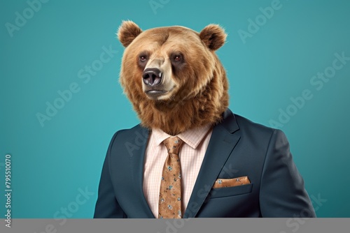 bear, animal, wild, brown, nature, male, mammal, wildlife, suit, background, business, forest, ursus, businessman, man, grizzly, person, head, wilderness, dangerous, big, powerful, face, 1, looking, concept, portrait, fur, predator, summer, outdoors, adult, carnivore, funny, black, closeup, white, brown bear, large, standing, monster, career, mask, work, attaching, green, strong, young