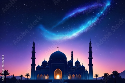 religion, muslim, ramadan, islam, arab, mosque, celebration, night, moon, sky, holiday, eid, card, arabian, greeting, culture, holy, background, month, traditional, vector, banner, light, star, design, illustration, allah, abstract, beautiful, festival, crescent, blue, religious, glow, decorative, architecture, faith, occasion, lantern, silhouette, calligraphy, graphic, masjid, pray, minaret, symbol