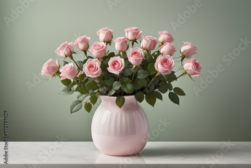 A beautiful bouquet of pink roses fills a glass vase ready to add a romantic touch to any table