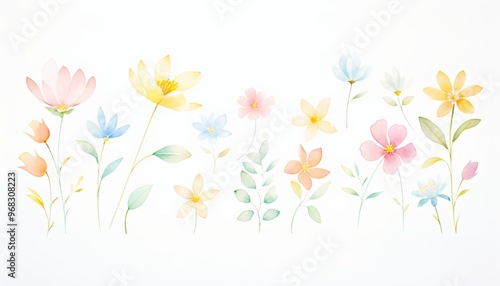 A beautiful collection of pastel flowers gently illustrated, perfect for spring themes and floral designs.