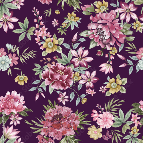 illustration, flower, seamless, floral, pattern, flower, vector, wallpaper, design, nature, pink, decoration, art, spring, summer, leaf, texture, blossom, plant, vintage, textile, ornament, purple, beauty