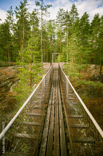 A beautiful hanging bridge in forest of Finland