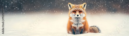 A beautiful red fox sits gracefully in the snow, capturing the serene essence of winter wildlife in a captivating landscape.