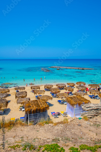 A beautiful view of Agios Philon Beach (Ayfilon) with blue sky in Dipkarpaz, North Cyprus.