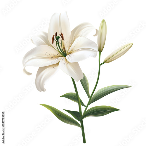 A beautiful white lily flower with green leaves against a black background on Transparent Background