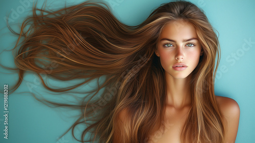 A beautiful woman with long brown hair, showcasing healthy hair and beauty.