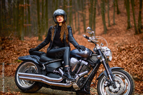 sensual, enjoying, long, cool, stylish, beauty, adult, portrait, black, sexy, helmet, leisure, vacation, chopper, hair, rebel, model, girl, adventure, pretty, vehicle, bike, young, attractive, motorbike, female, road, rider, posing, single, transportation, nature, woman, motor, autumn, leather, biker, beautiful, motorcycle, caucasian, fashion, travel, lady, lifestyle, people, freedom, person