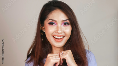 care, style, happy, pretty, laugh, expression, facial, green, pink, lilac, magenta, posing, pose, closeup, portrait, amazed, beauty, excited, look, make-up, female, lady, woman, indonesian, asian, smile, colourful, eyeshadow, colours, lip, white, model, eye, attractive, girl, beautiful, cosmetic, eye, glamour, head shot, indonesia, make up, person, skin, studio, young