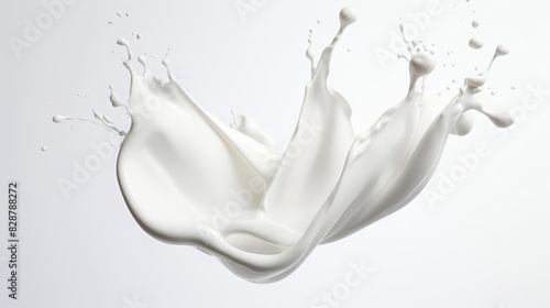 A beautifully captured splash of white liquid in midair, with a white background, showcasing the fluid dynamics and clean, fresh aesthetic of milk or cream