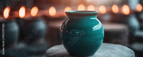 A beautifully crafted ceramic jar positioned inside a kiln, showcasing its durable and glossy finish after firing.