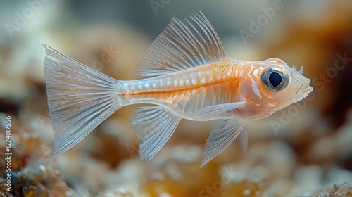 A beautifully detailed glassfish with semi-transparent body, soft neutral background