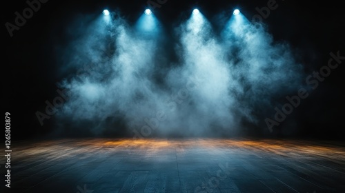 A beautifully lit stage surrounded by fog, evoking a sense of drama and mystery, perfect for a captivating performance or an artistic showcase of talent.