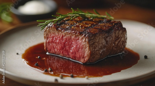A beautifully plated gourmet steak with rich sauce, fine dining presentation