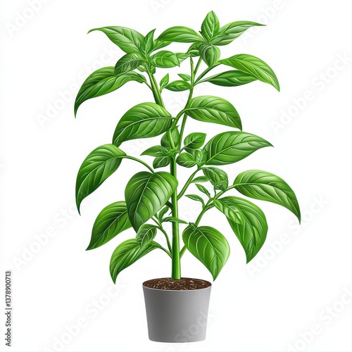 A beautifully potted basil plant with lush green leaves isolated on a white background to showcase its freshness and flavor