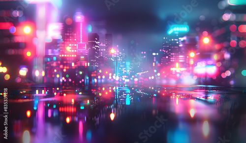 A big city at night in blurred lights
