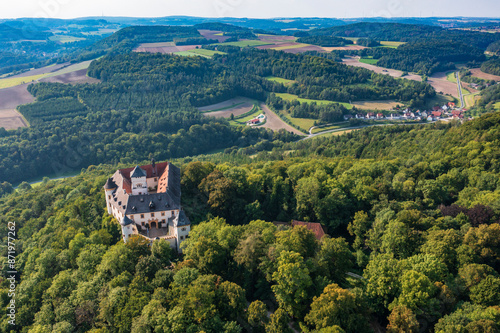 A bird's eye view of the idyllically situated Greifenstein Castle near Heiligenstadt in Franconian Switzerland
