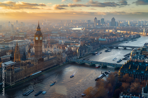A bird's-eye view of London landscape photography. View of Big Ben.
