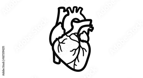 A black and white illustration of a human heart