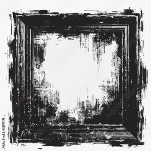 A black and white photo featuring a simple frame set against a clean white background, emphasizing minimalism.