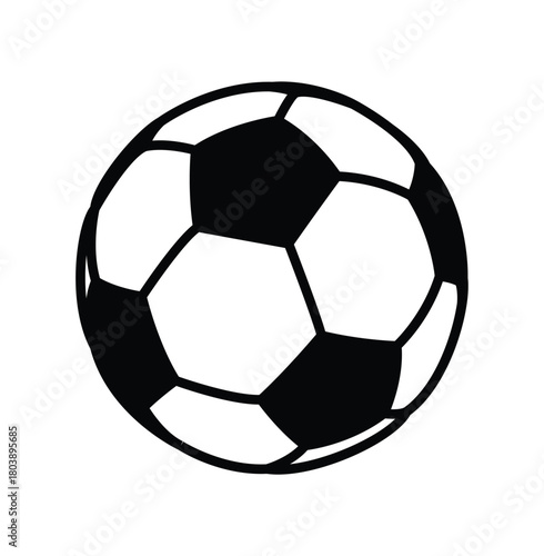 A black and white soccer ball with pentagons and hexagons on a white background simple illustration