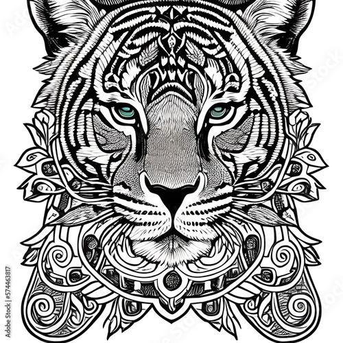tiger, tattoo, vector, animal, head, lion, illustration, cat, logotype, design, art, tribal, wild, skull, pattern, symbol, face, black, mammal, power, nature, decoration, felino, predator, drawing