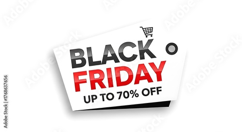 A Black Friday sale sign advertises up to 70% off with a shopping cart icon.