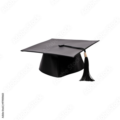 A black graduation cap with a gold tassel symbolizes achievement. Suitable for graduation designs, invitations, and educational concepts. Generative AI