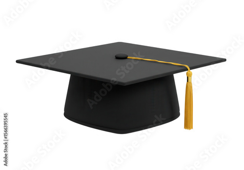 A black graduation cap with a golden tassel isolated on transparent background, symbolizing academic achievement and educational success