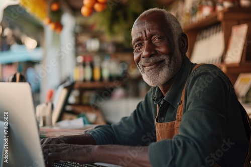 senior, owner, elderly, picture, online, entrepreneur, african, american, black, business, person, technology, cyberspace, shop, standing, smile, retail, job, employee, delivery, counter, african american, small business, laptop, afro, computer, work, store, successful, working, waitress, holding, portrait, confident, success, sale, sell, men at work, marketing, workplace, order, older, people, content, black man, alone, man, male, man