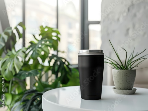 stainless, steel, black, tumbler, metal, mock-up, glasses, white, table, modern, minimalist, promotional, copy space, customization, green, plant, decoration, office, background, beverage, insulated, recyclable, environmentally friendly, branding, logotype, marketing, business, corporate, presentation, advertisement, refreshment, lifestyle, sleek, design, office supply, workplace, environment, professional, giveaway, merchandise