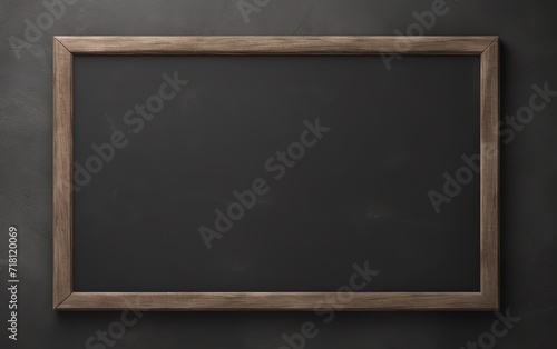 A blank black chalkboard in the photo with a wooden frame beside it. generative AI