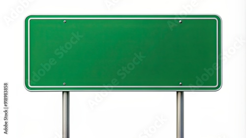 A blank green road sign on a white background, sign, symbol, concept, communication, message, transportation, blank, empty