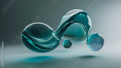 A blue and green abstract shape made of glass material, with rounded edges floating in the air.