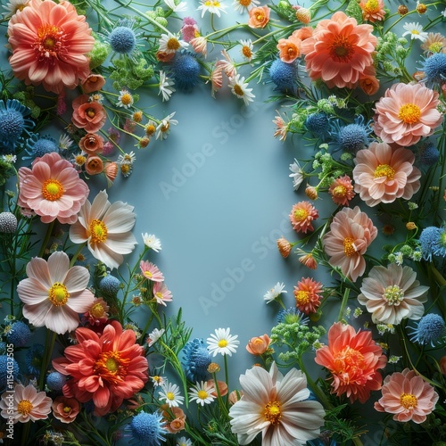 nature, floral, summer, flower, spring, frame, background, plant, blossom, decorative, card, wedding, pink, greeting, romantic, design, beauty, holiday, blue, birthday, celebration, valentine, love, white, border, bouquet, composition, bright, colourful, green, anniversary, vintage, template, leaf, pattern, invitation, flora, bloom, botanical, red, garden, day, concept, daisy, space, circle, chaplet, violet, yellow