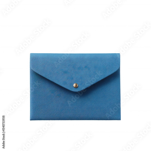 A blue envelope with a button closure, isolated on a white background. Ideal for organizing documents, letters, or personal items in a stylish manner.