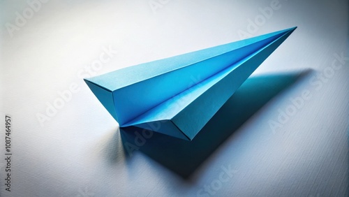 A Blue Paper Airplane Ready for Flight, Casts a Sharp Shadow on a Smooth White Surface