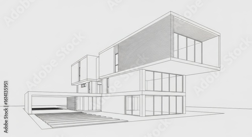 architecture, house, building, design, modern, home, blueprint, drawing, vignetting, structure, construction, plan, residential, property, real, estate, exterior, facades, style, contemporary, render, white, minimalist, wireframe, abstract, outline