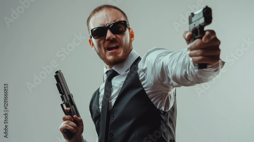 bodyguard, posing, humorously, fake, weapon, silly, gun, handgun, agent, businessman, criminal, gangster, security, police, person, killer, handgun, secret, man, crime, mafia, black, people, business, suit, guy, danger, armed, dangerous