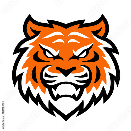 A bold and fierce tiger mascot logo with orange, black, and white colors, showcasing an intense facial expression. Generated with AI
