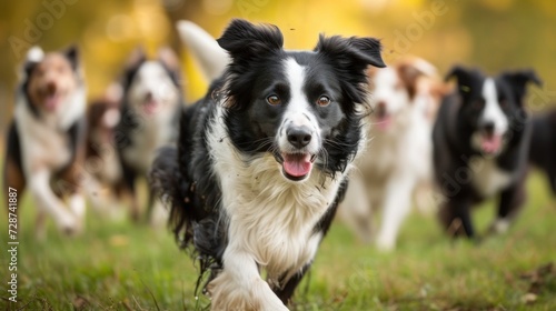 A Border Collie herding a group of friends, showcasing intelligence and agility