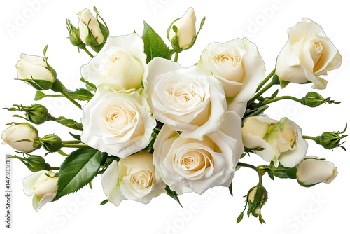 A Bouquet Of Delicate White Roses With Green Leaves And Buds Arranged In A Cluster On A Transparent Background