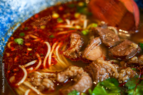 A bowl of authentic and delicious Taiwanese spicy beef noodles