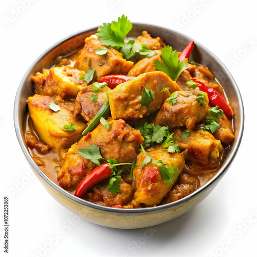 A bowl of chicken karahi, a flavorful Pakistani dish with tender chicken
