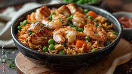 meal, food, rice, dish, dinner, lunch, shrimp, cookery, cooked, seafood, vegetable, fried, delicious, tasty, traditional, plate, pepper, healthy, epicure, green, prawn, paella, asian, background, spanish, thai, chinese, onion, red, fresh, yellow, pan, tomatoes, wooden, oriental, hot, stir, asia, carrot, fish, spice, table, egg, squid, sauce, saffron, meat, garlic