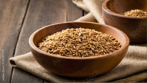 grain, bowl, wooden, rustic, food, healthy, diet, wheat, seed, cereal, agriculture, brown, burlap, natural, organic, harvest, texture, still life, closeup, fiber, ingredient, raw, nourishment, edible, preparation, culinary, cooking, whole, grain, table, surface, wood, sackcloth, sack, jute, canvas, material, heap, pile, abundance, plentiful, full