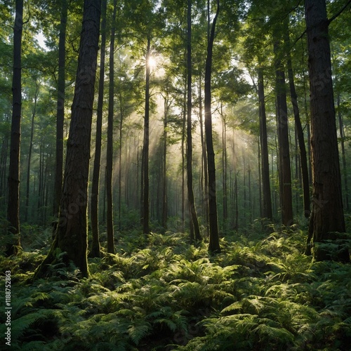 forest, tree, nature, tree, landscape, sun, green, path, autumn, light, wood, misty, fog, timberland, wood, sunlight, mist, foggy, park, summer, foliage, spring, pine, morning, leaf
