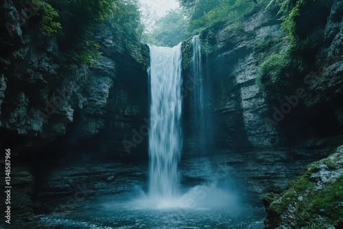 waterfall, nature, serenity, dawn, calmness, lush, greenery, cliff, cascading, water, pool, mist, landscape, adventure, exploration, wilderness, peaceful, beauty, fresh, air, sunlight, reflections, natural, wonder, environment, scenic, travel, hiking, ecosystem, flora, fauna, feature, calm, breathtaking, picturesque, vibrant, healing, climate, geology