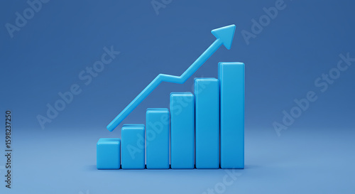 growth, business, finance, economy, success, progress, upward, arrow, bar, graph, chart, datum, analysis, report, statistic, investment, profit, gain, increase, positive, concept, three-dimensional, illustration, blue, background, clean, modern, simple, abstract, trend, performance, development, strategy, marketing, sale, income, revenue