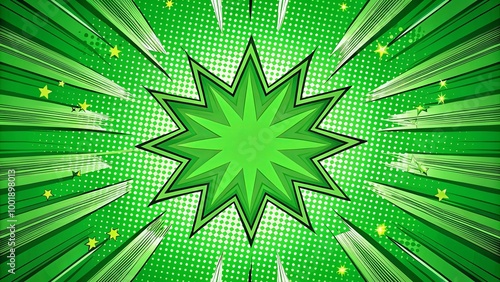 green, star, starburst, comic book, comic, explosion, pop art, graphic, abstract, design, background, retro, vintage, pattern, halftone, dot, illustration, art, bright, vibrant, bold, dynamic, energy, power, action